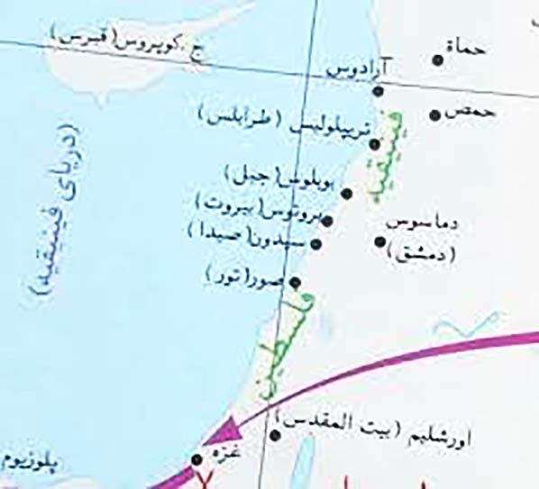 نقشه فینیقیه باستان و شام پس از حمله اسرائیل